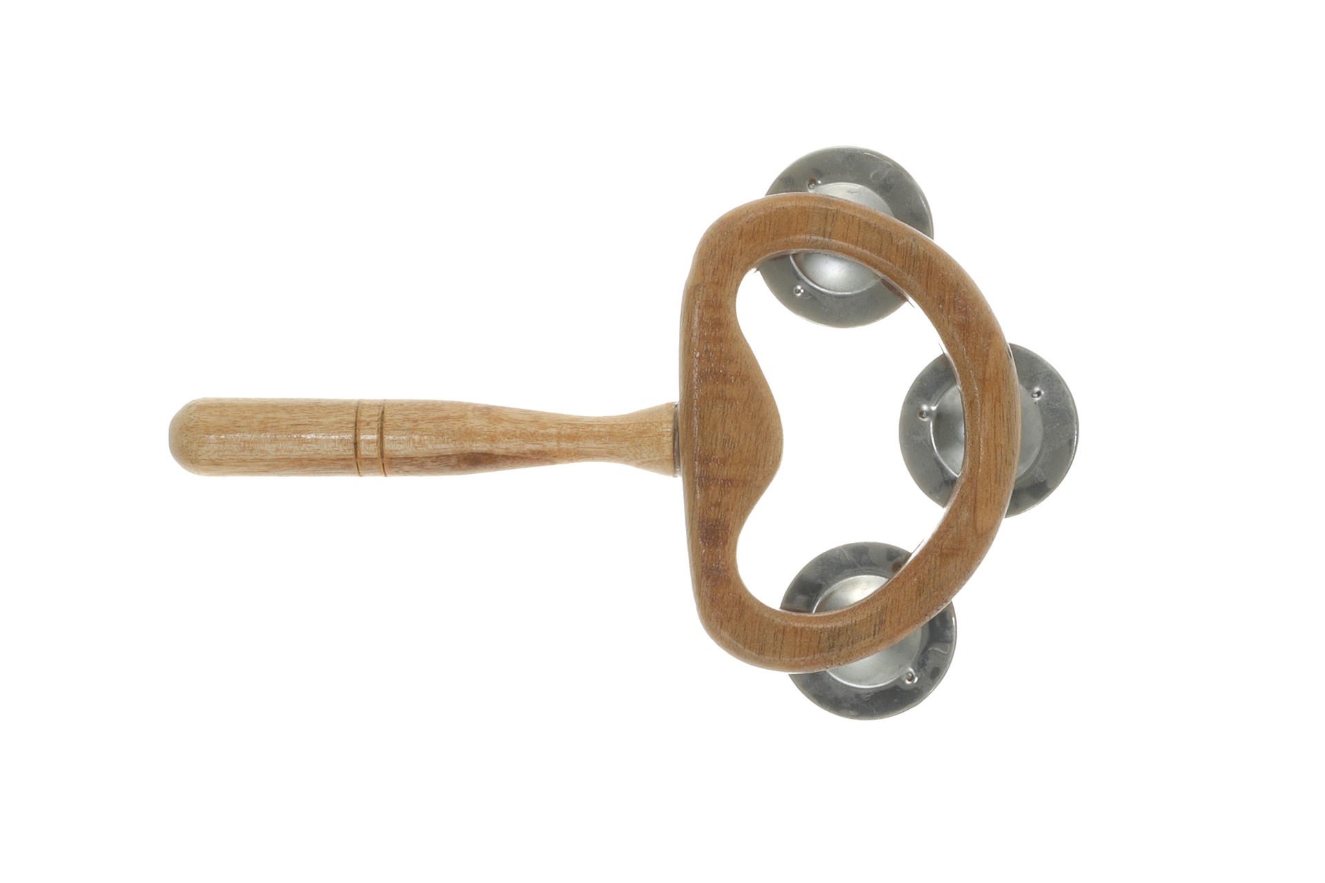 Ξύλινο ντέφι χειρός με 3 σιδερένια κουδουνάκια και λαβή για ευκολότερη χρήση, 20 εκ.