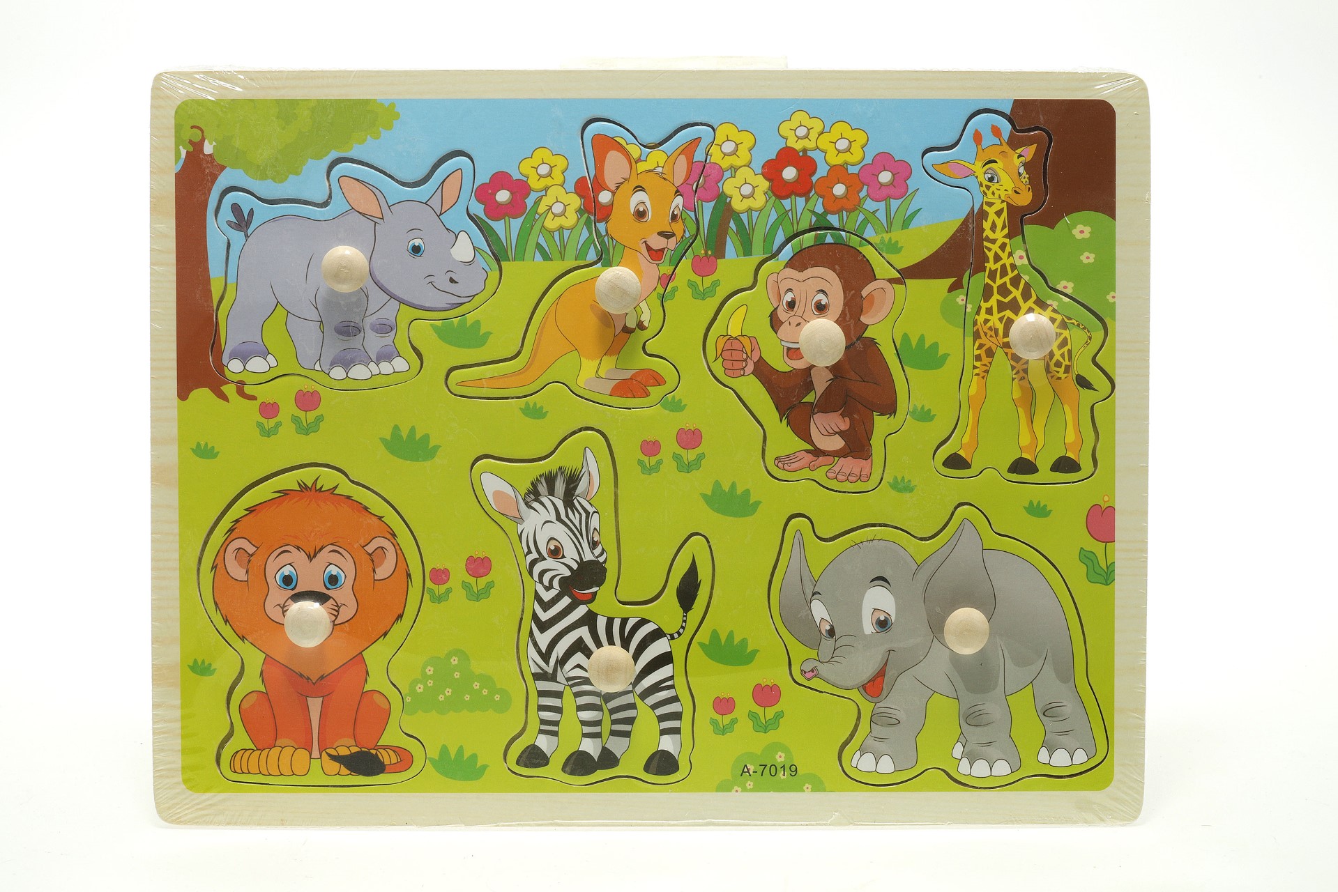 Ξύλινο παιδικό παζλ με σφηνώματα διαστάσεων 30*22 εκ. σε διάφορα σχέδια. Κατάλληλο για παιδιά ηλικίας 2+. Αποτελείται από 7 τεμάχια.