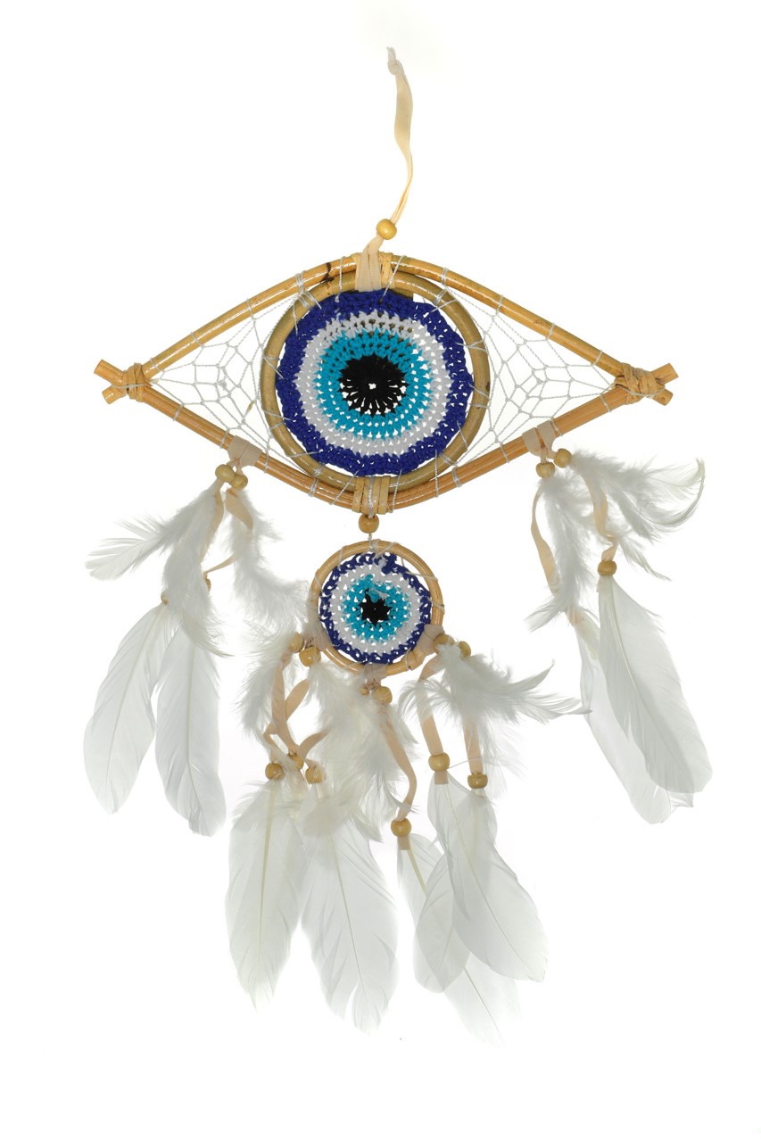 Χειροποίητη ονειροπαγίδα σε σχήμα ματιού από bamboo διαστάσεων 25*40εκ. στολισμένη με χάντρες και φτερά