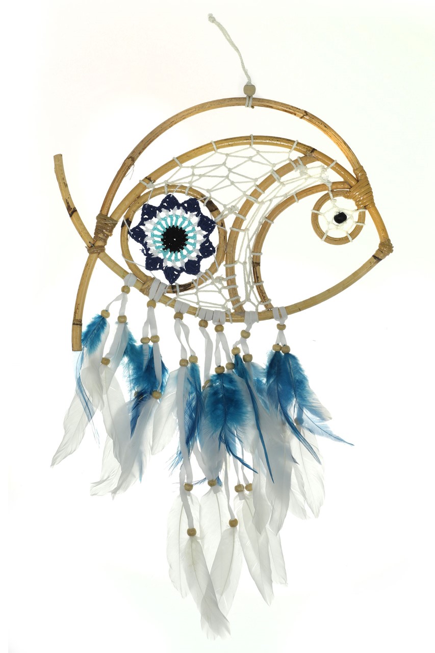 Χειροποίητη ονειροπαγίδα σε σχήμα ψαριού από bamboo διαστάσεων 30*46εκ. στολισμένη με χάνδρες και φτερά