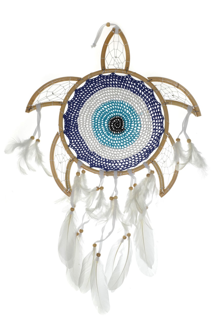 Χειροποίητη ονειροπαγίδα χελώνα από bamboo διαστάσεων 36*59 εκ. στολισμένη με χάνδρες και φτερά